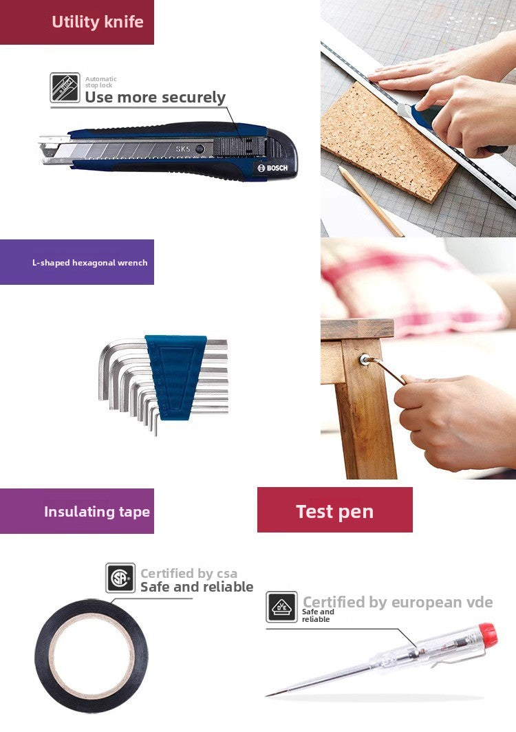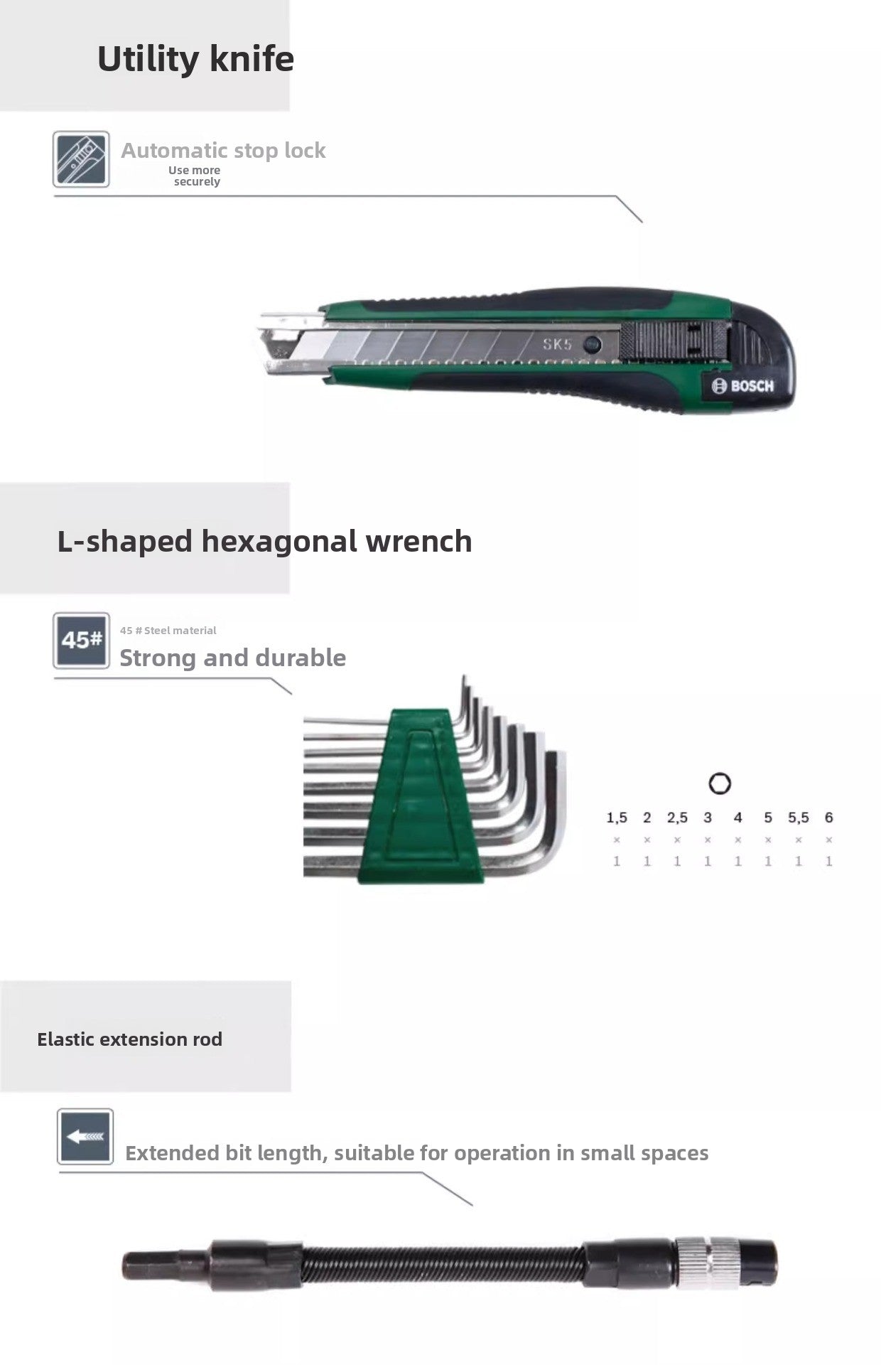 Bosch Multifunctional Household Repair Hardware Tool Set Electrician Carpenter Multifunctional Special Repair 108-Piece Set